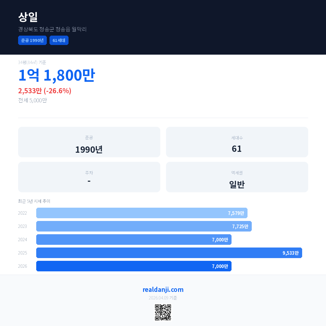 상일 최근 거래가는 7,000만입니다. (2026-03)