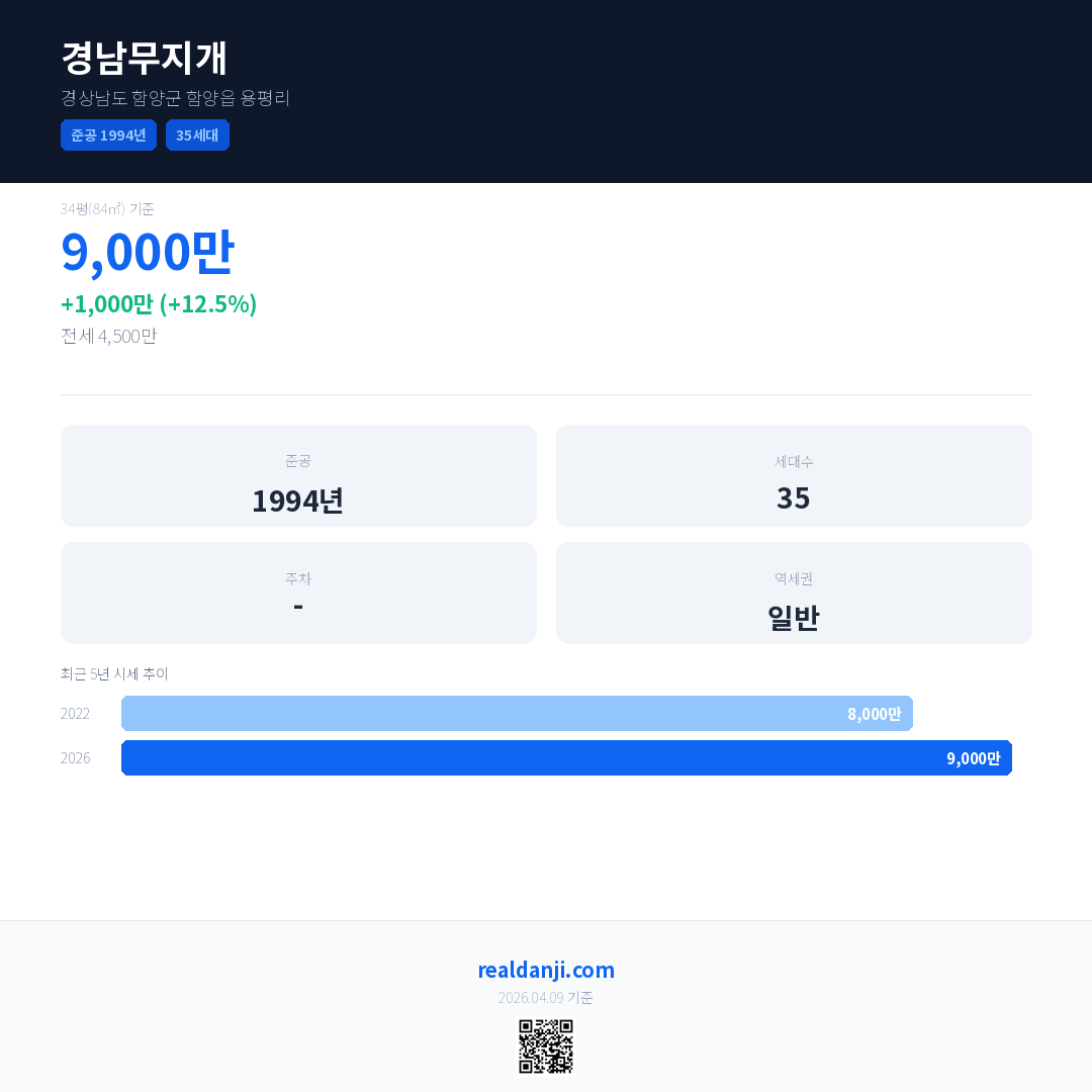 경남무지개 최근 거래가는 9,000만입니다. (2026-01)