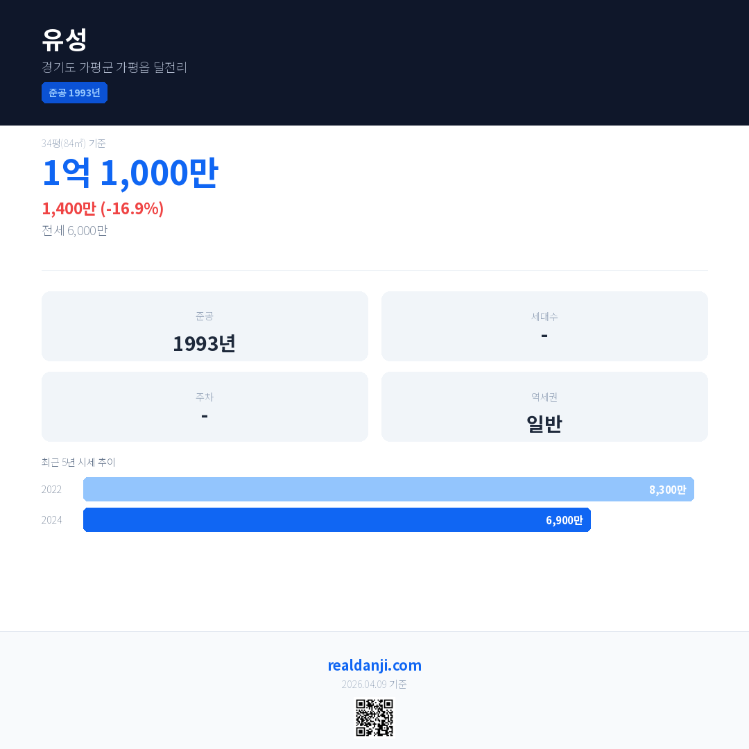 유성 국민평형 기준 2024년 평균 거래가는 6,900만으로, 전년 대비 16.9% 하락 했습니다.