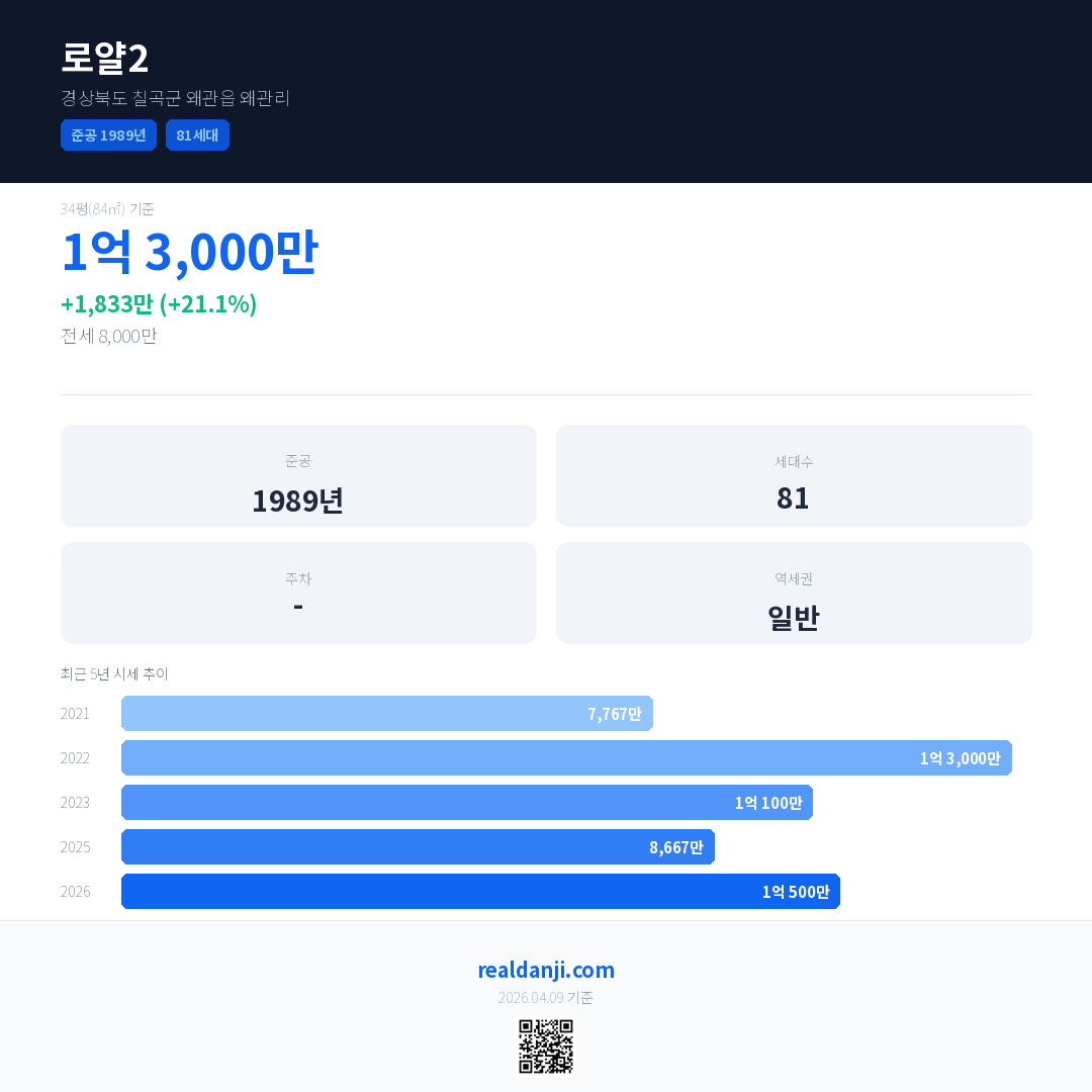 로얄2 최근 거래가는 1억 3,000만입니다. (2026-03)