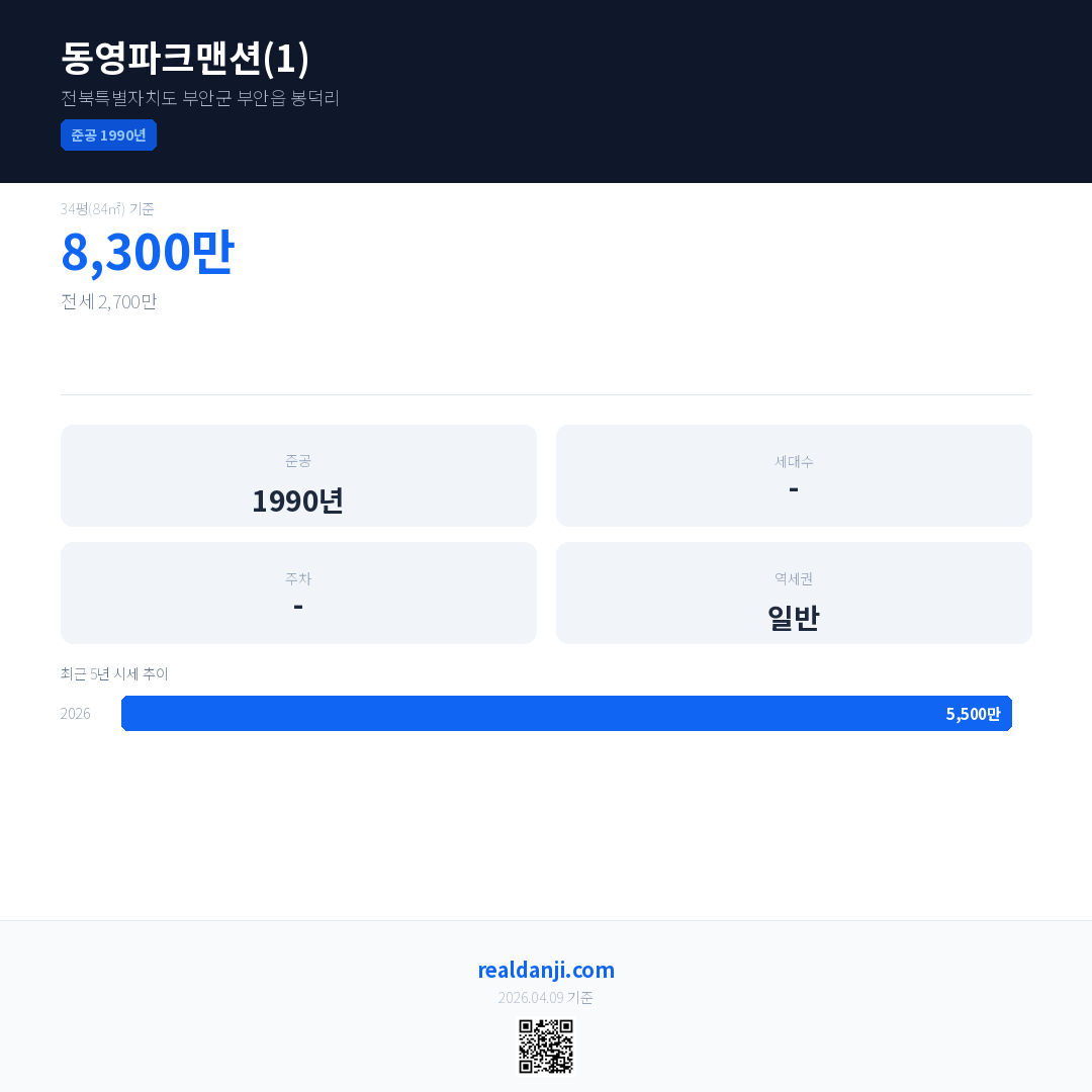 동영파크맨션(1) 최근 거래가는 8,300만입니다. (2026-03)