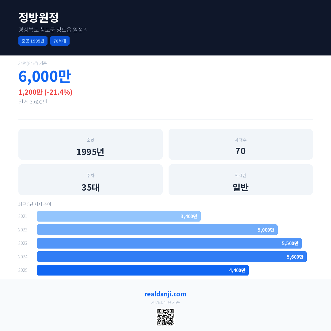 정방원정 최근 거래가는 6,000만입니다. (2026-03)
