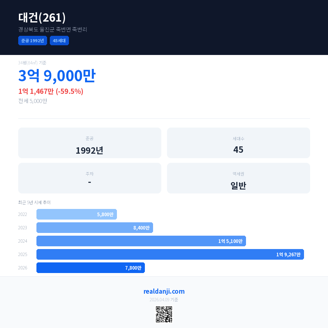 대건(261) 최근 거래가는 3억 9,000만입니다. (2026-01)