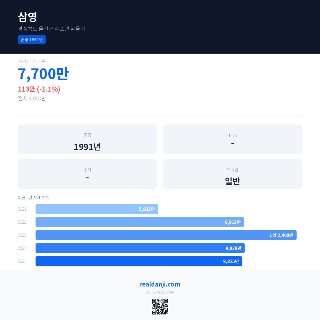 삼영 최근 거래가는 1억 3,000만입니다. (2025-09)