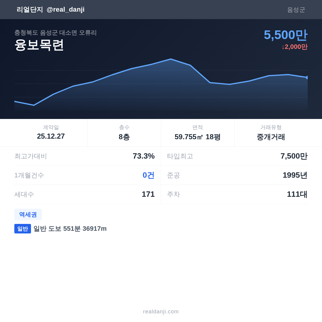 | 2025.12.27 | 60㎡ | 8층 | 5,500만 |