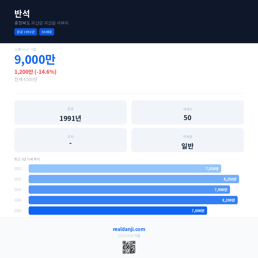 반석 최근 거래가는 7,000만입니다. (2025-09)
