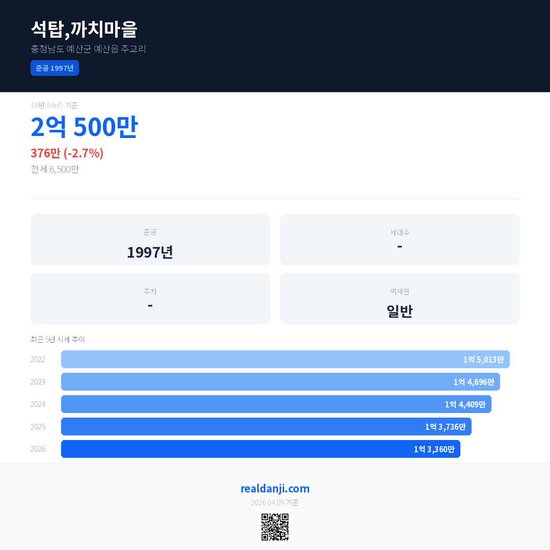 석탑,까치마을 최근 거래가는 5,000만입니다. (2026-04)