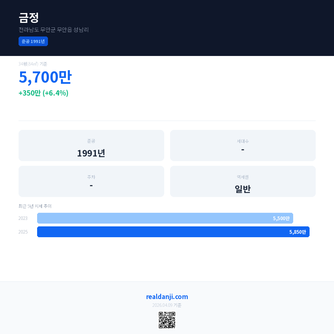 금정 최근 거래가는 6,000만입니다. (2025-12)