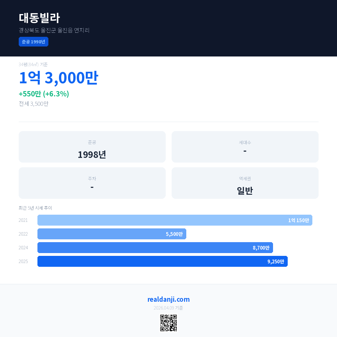 대동빌라 최근 거래가는 1억 3,000만입니다. (2025-09)