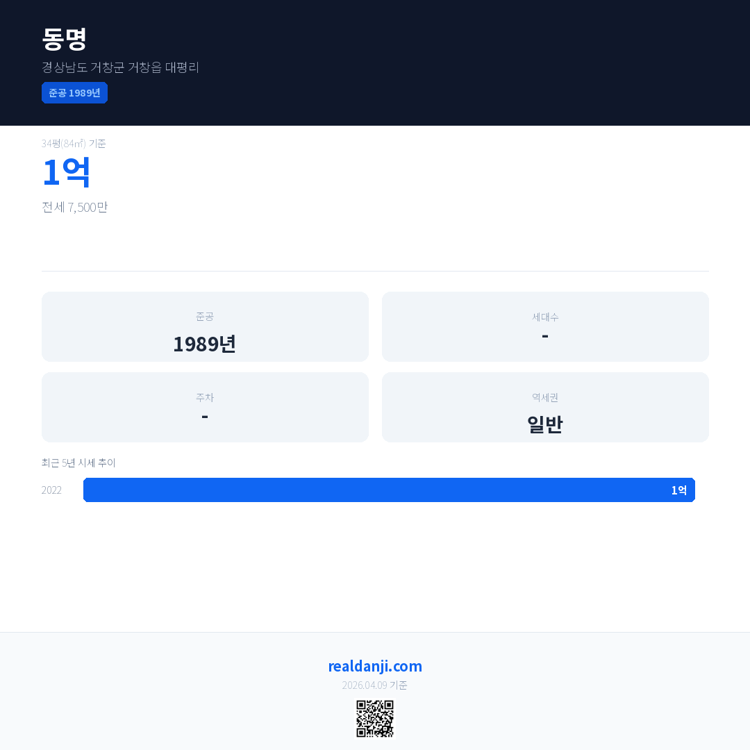 동명 최근 거래가는 1억입니다. (2022-07)