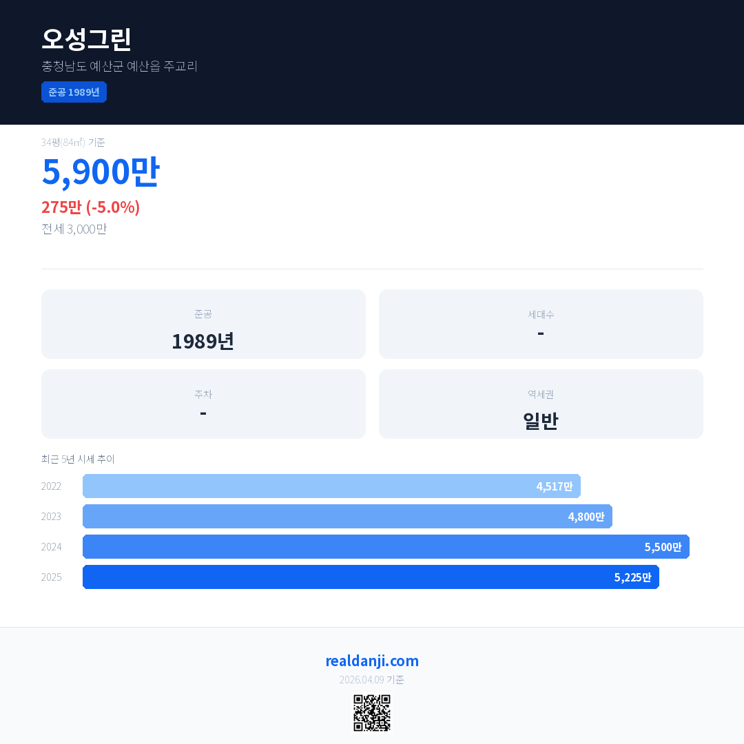 오성그린 최근 거래가는 5,900만입니다. (2025-11)