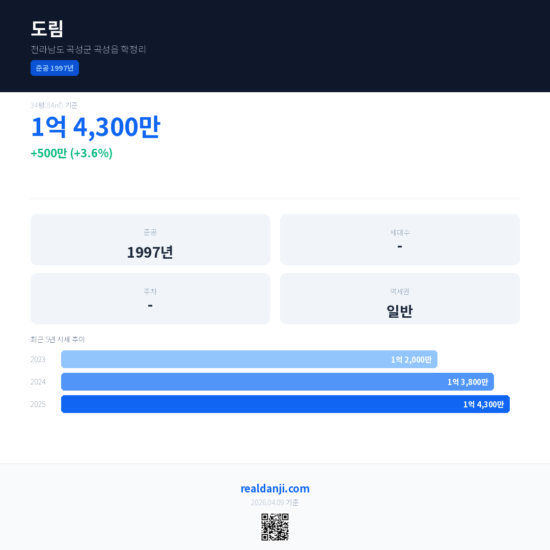 도림 최근 거래가는 1억 300만입니다. (2026-03)