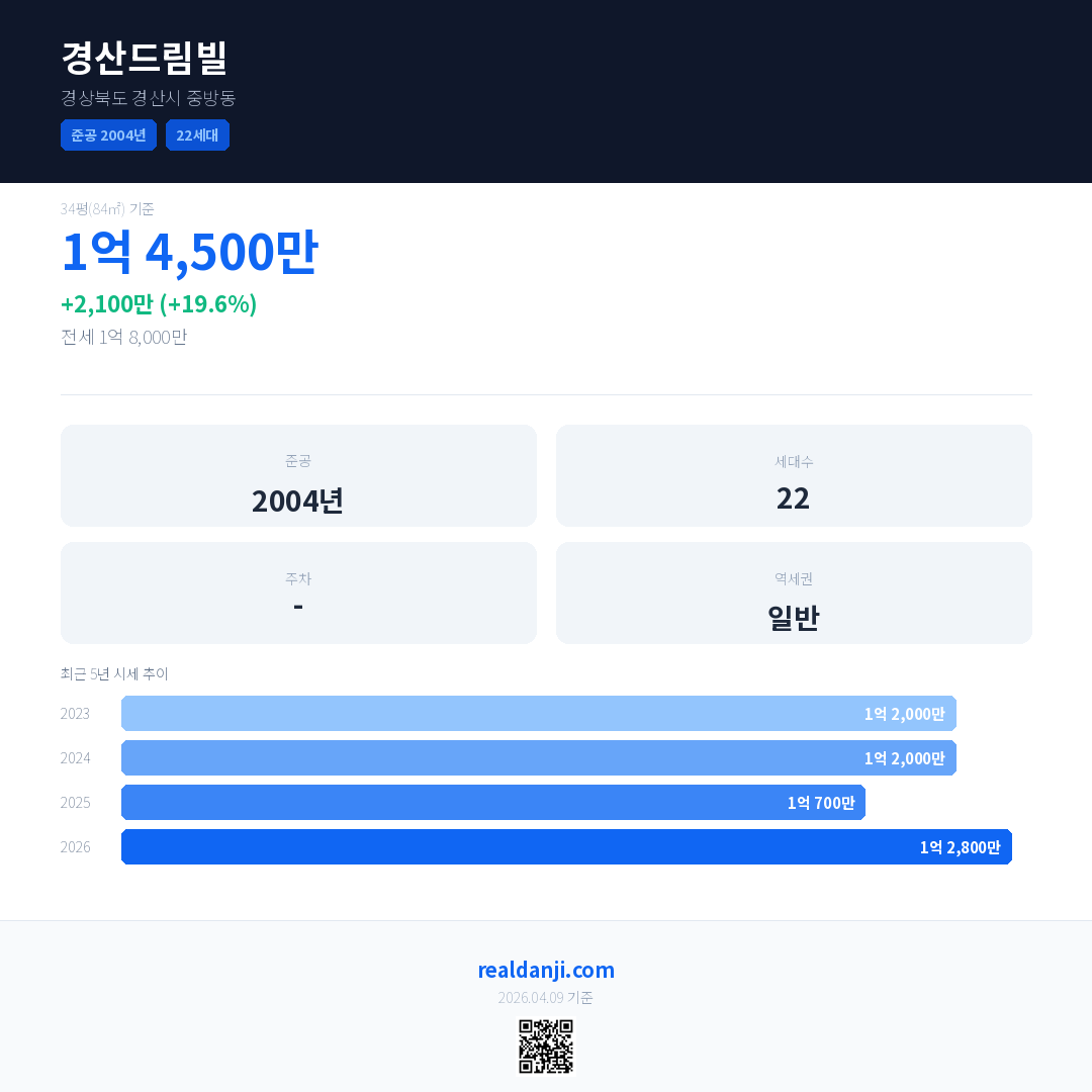 경산드림빌 최근 거래가는 1억 4,500만입니다. (2026-02)