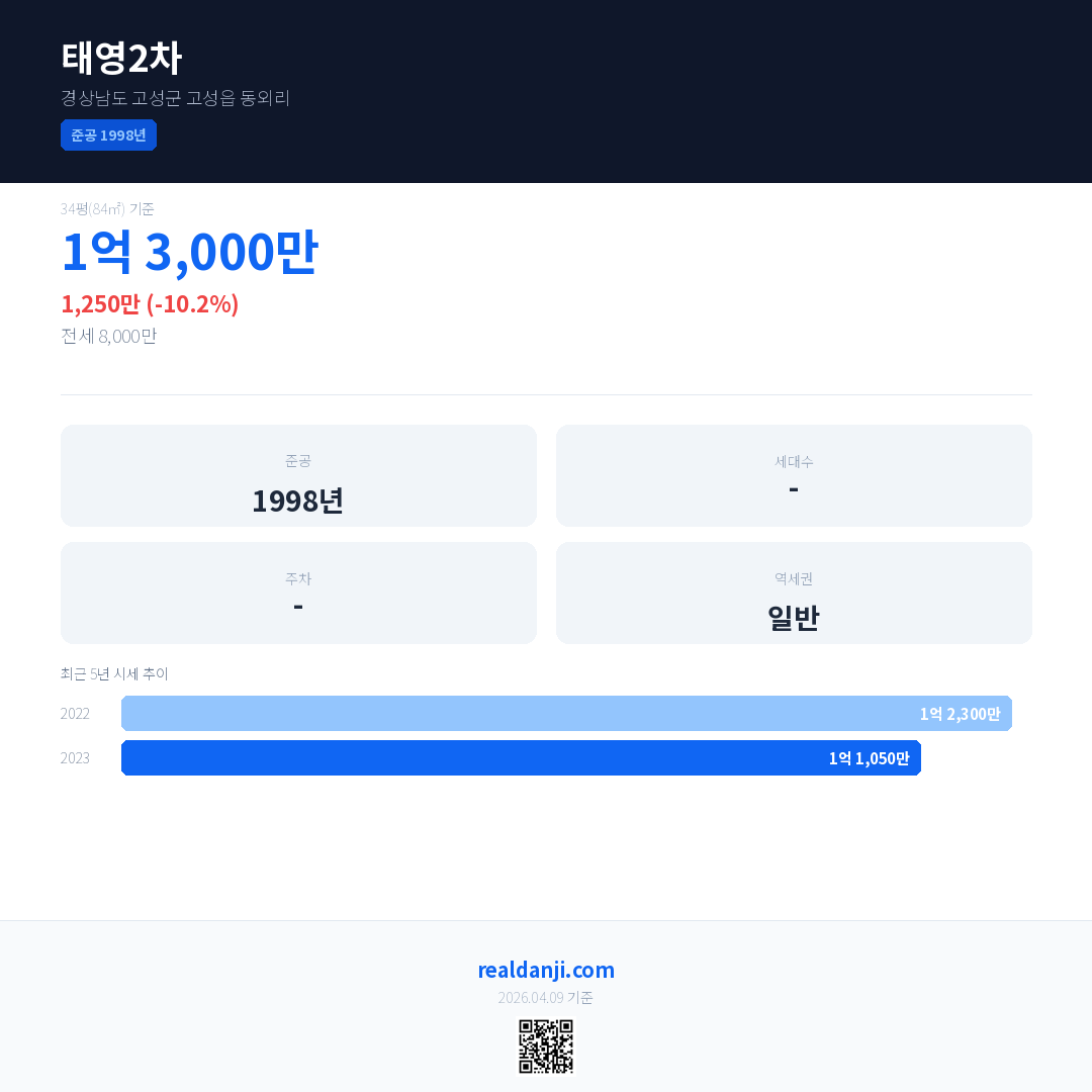 태영2차 최근 거래가는 1억 3,000만입니다. (2025-10)