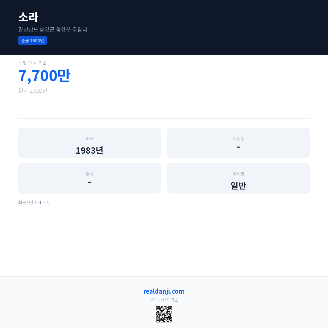 소라 최근 거래가는 7,700만입니다. (2025-06)