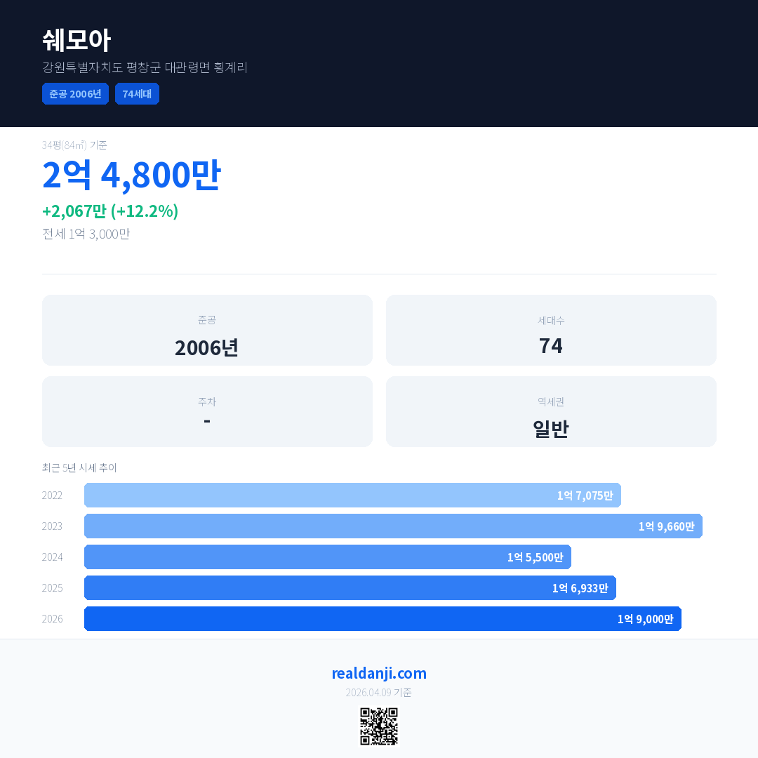 쉐모아 최근 거래가는 2억 4,800만입니다. (2026-02)
