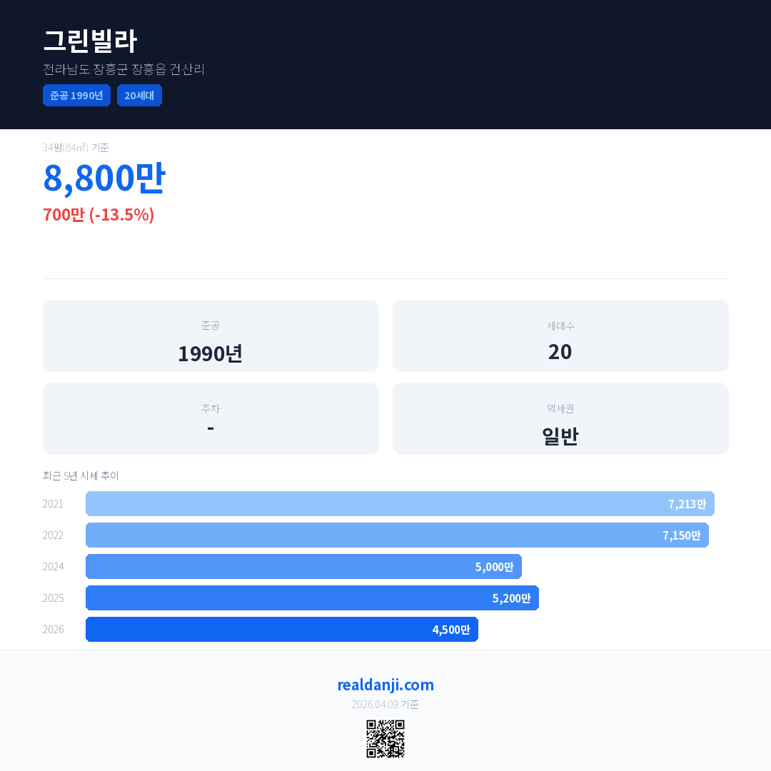 그린빌라 최근 거래가는 8,800만입니다. (2026-01)