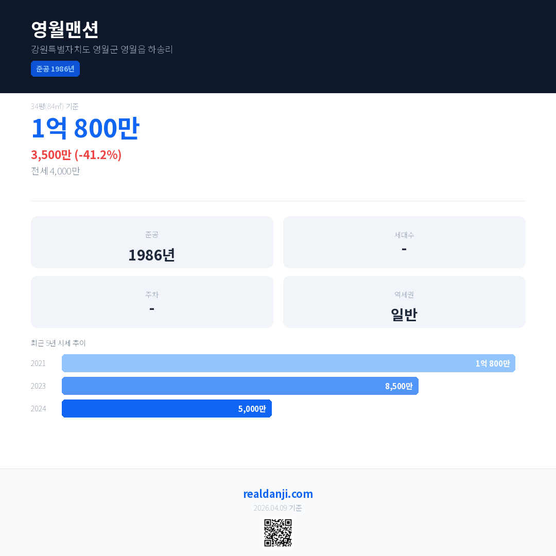 영월맨션 최근 거래가는 1억 800만입니다. (2026-03)