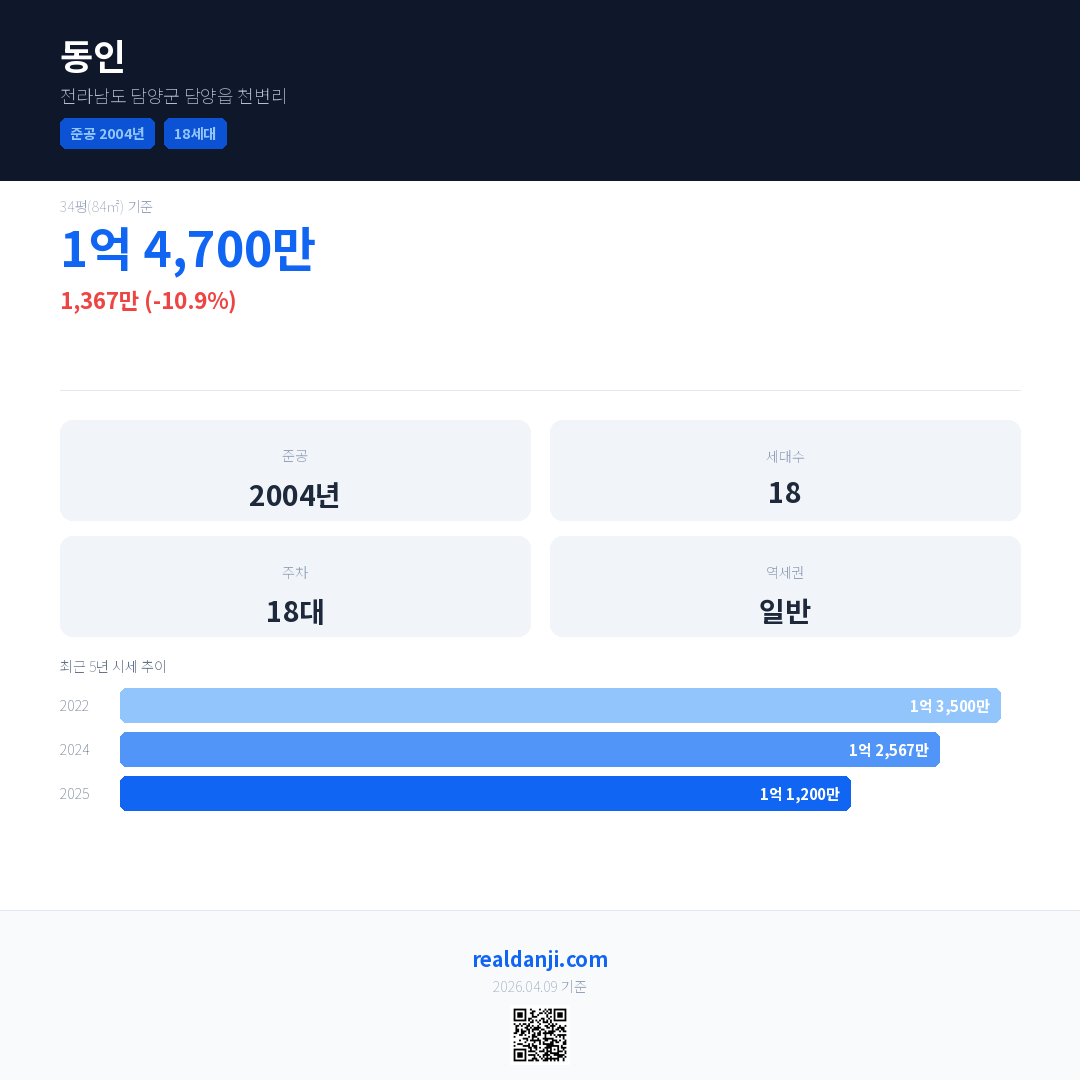 동인 최근 거래가는 1억 4,700만입니다. (2025-12)
