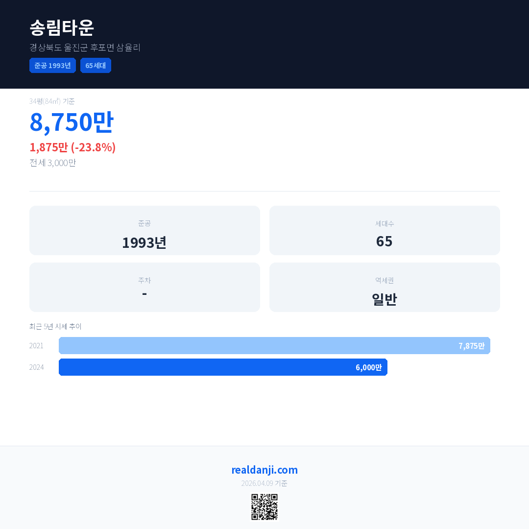 송림타운 최근 거래가는 8,750만입니다. (2026-01)