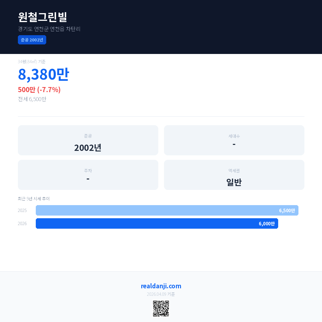 원철그린빌 최근 거래가는 8,380만입니다. (2026-03)
