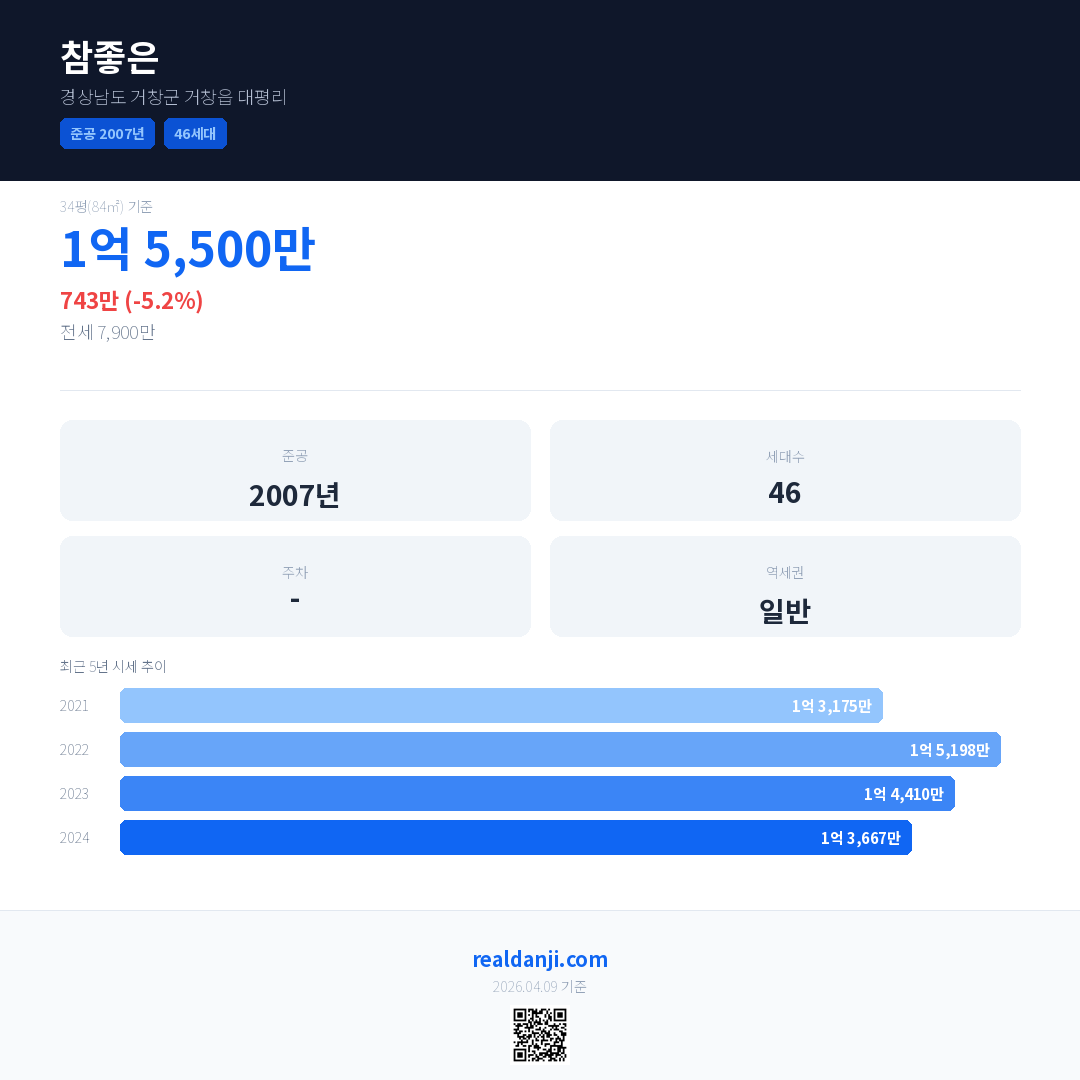 참좋은 최근 거래가는 1억 5,500만입니다. (2025-10)