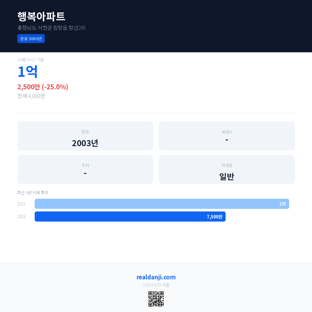 행복아파트 최근 거래가는 1억입니다. (2026-01)