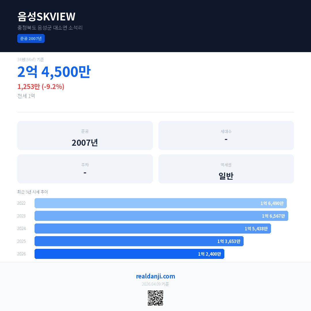 음성SKVIEW 최근 거래가는 2억 4,500만입니다. (2026-03)
