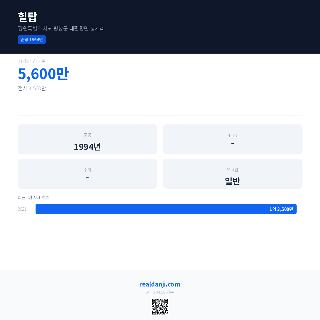 힐탑 최근 거래가는 1억 3,500만입니다. (2026-03)