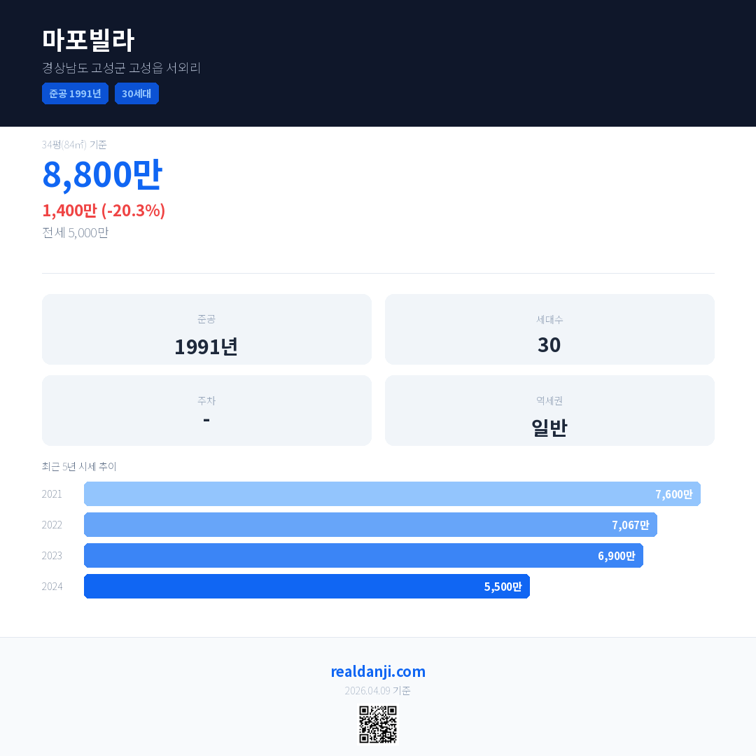 마포빌라 최근 거래가는 8,800만입니다. (2024-08)