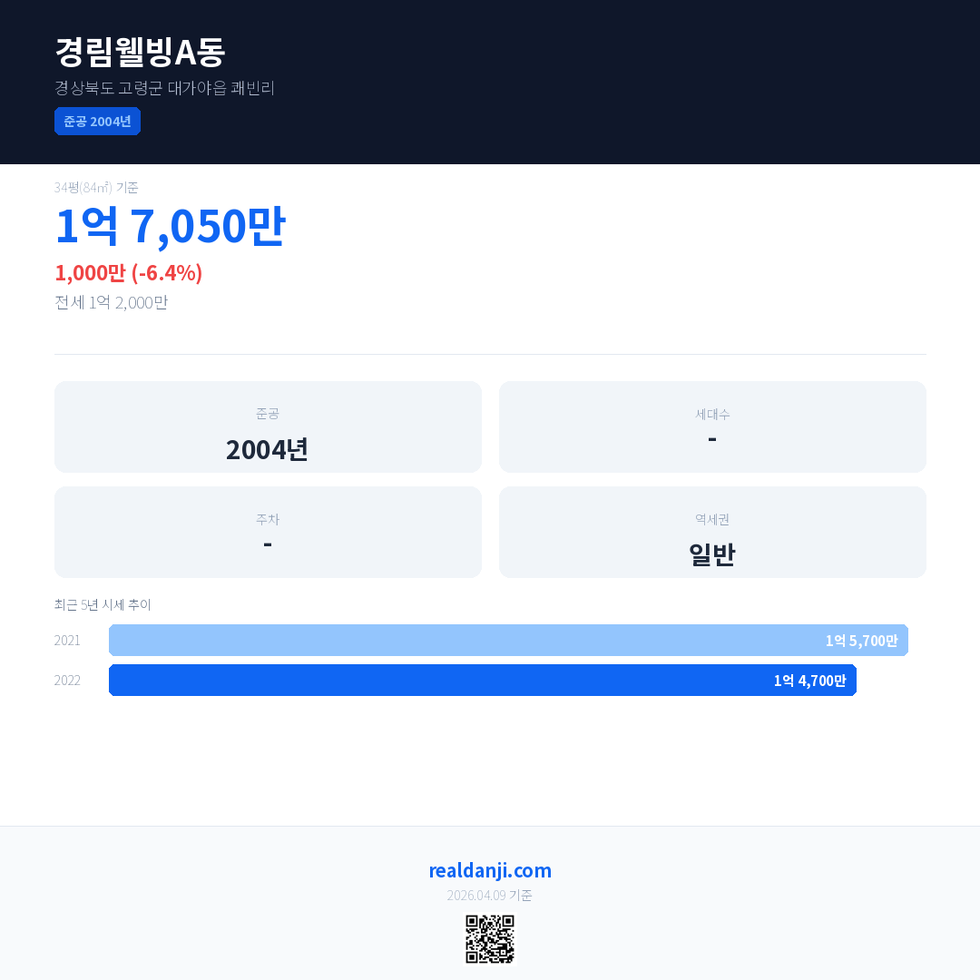 경림웰빙A동 최근 거래가는 1억 7,050만입니다. (2026-02)