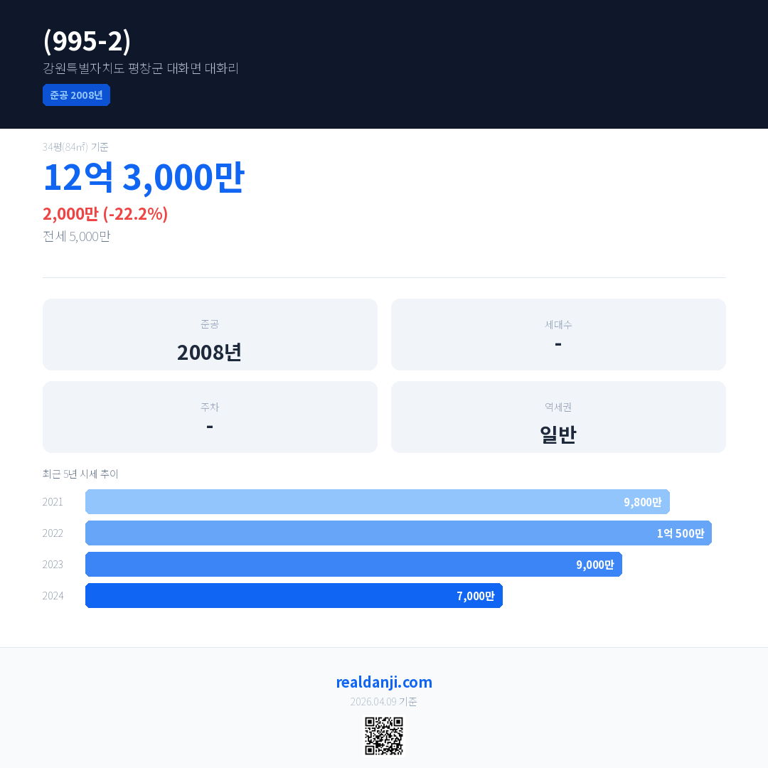 (995-2)은(는) 2008년에 준공되었으며, 현재 18년차입니다.