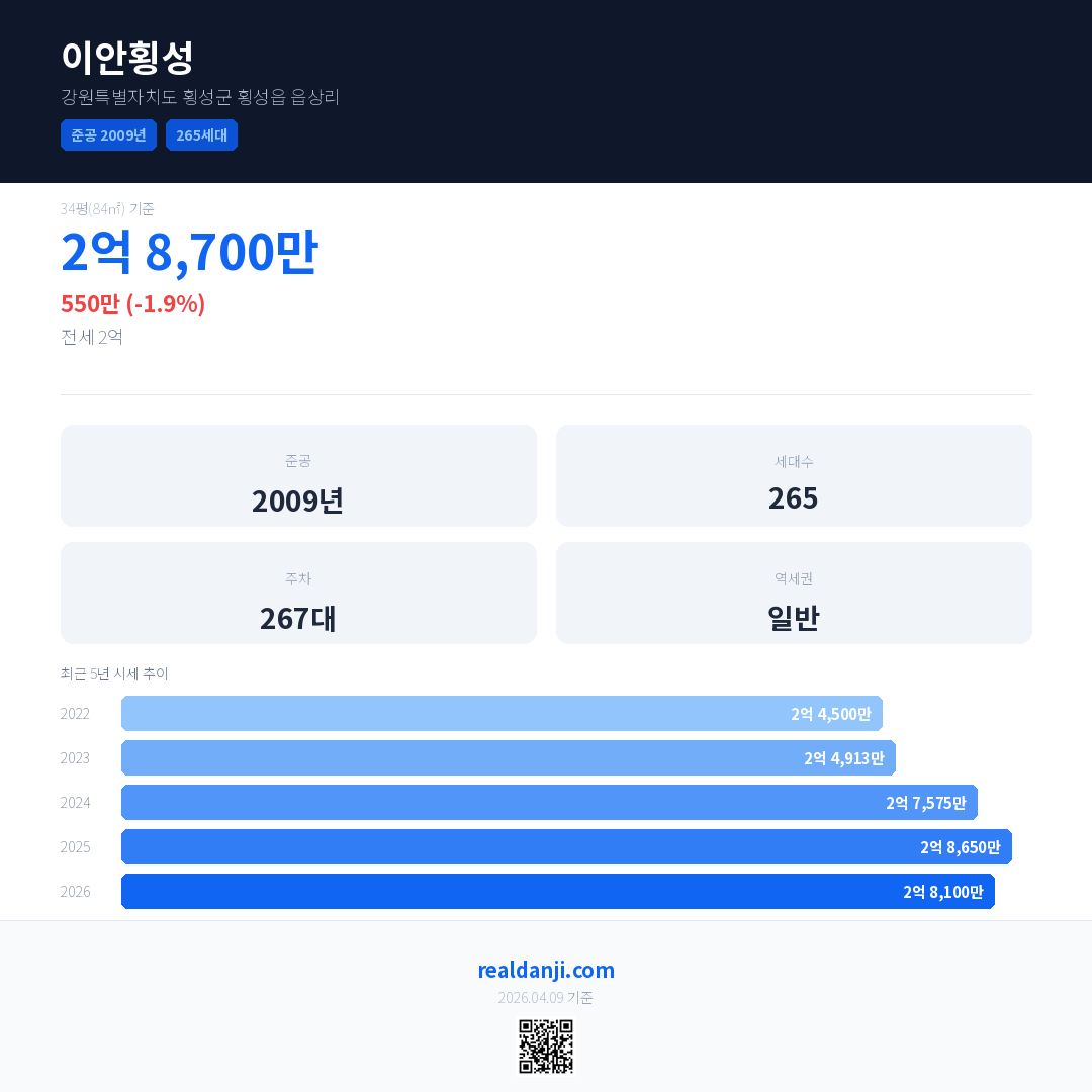 이안횡성 최근 거래가는 2억 8,700만입니다. (2026-03)