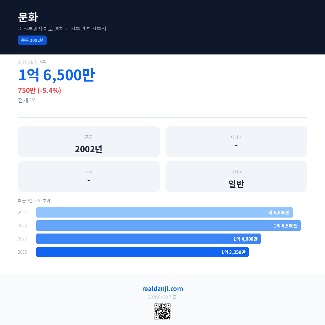 문화 최근 거래가는 1억 6,500만입니다. (2025-12)