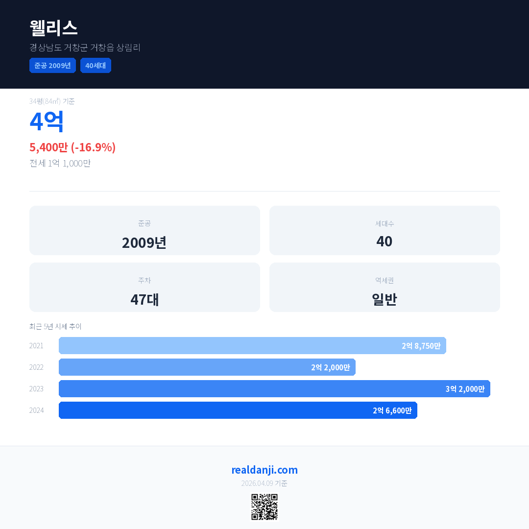 웰리스 최근 거래가는 4억입니다. (2026-01)