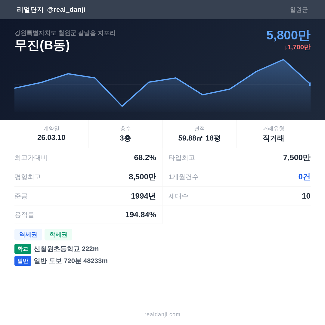 | 2026.03.10 | 60㎡ | 3층 | 5,800만 |
