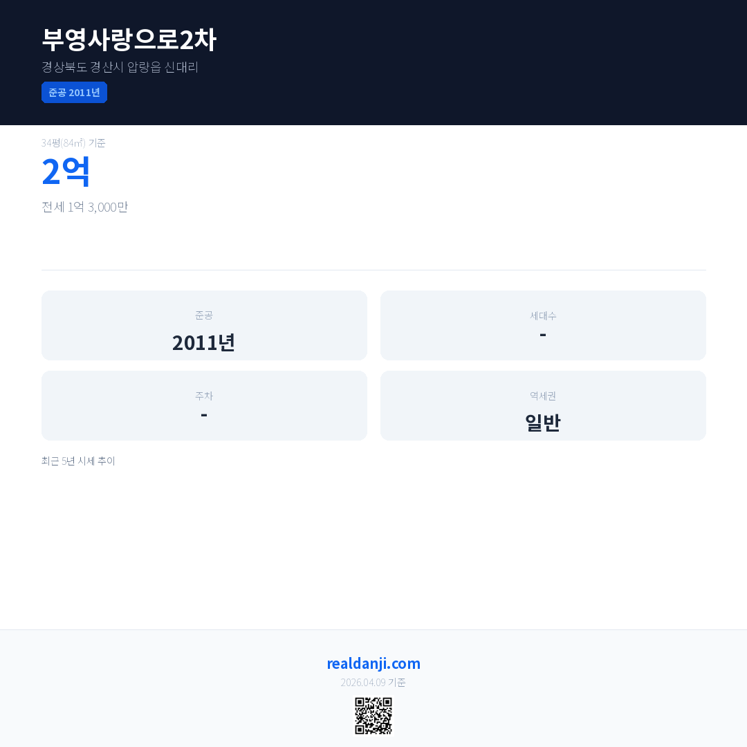 부영사랑으로2차 최근 거래가는 2억입니다. (2026-03)