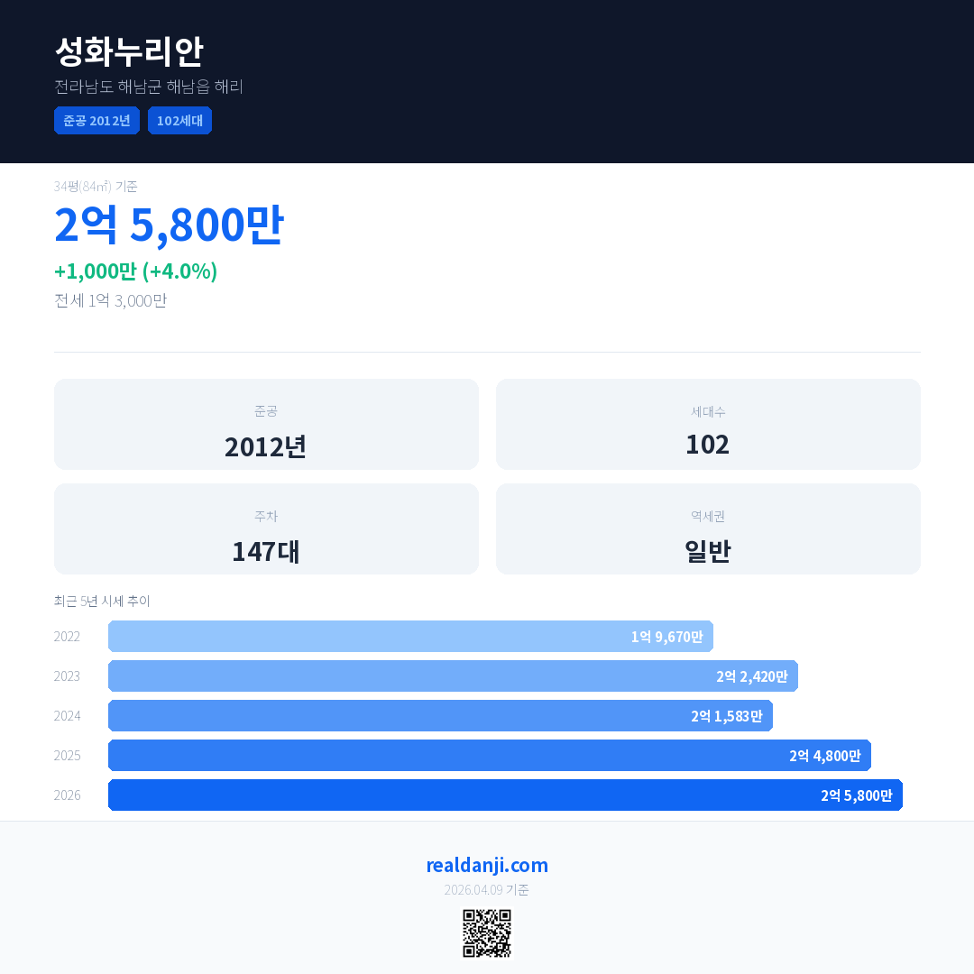 성화누리안 최근 거래가는 2억 5,800만입니다. (2026-01)