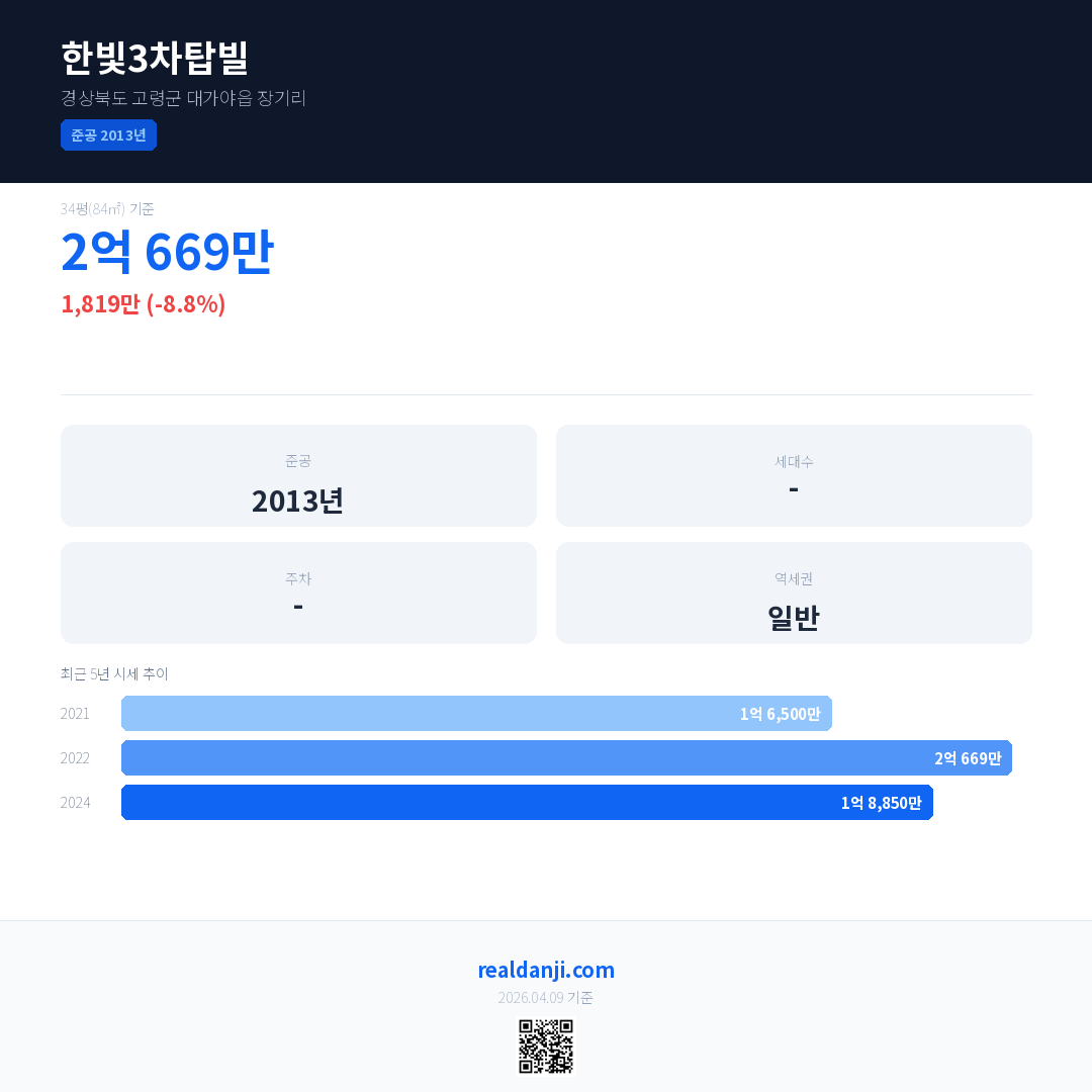 한빛3차탑빌 최근 거래가는 2억 669만입니다. (2024-09)