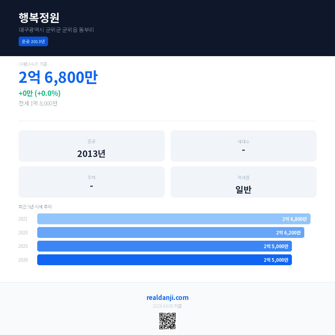 행복정원 최근 거래가는 2억 5,000만입니다. (2026-03)
