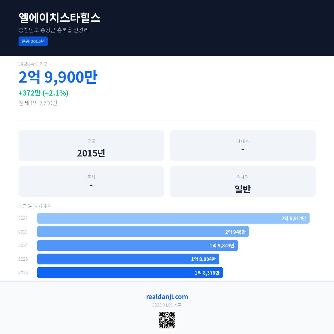 엘에이치스타힐스은(는) 2015년에 준공되었으며, 현재 11년차입니다.