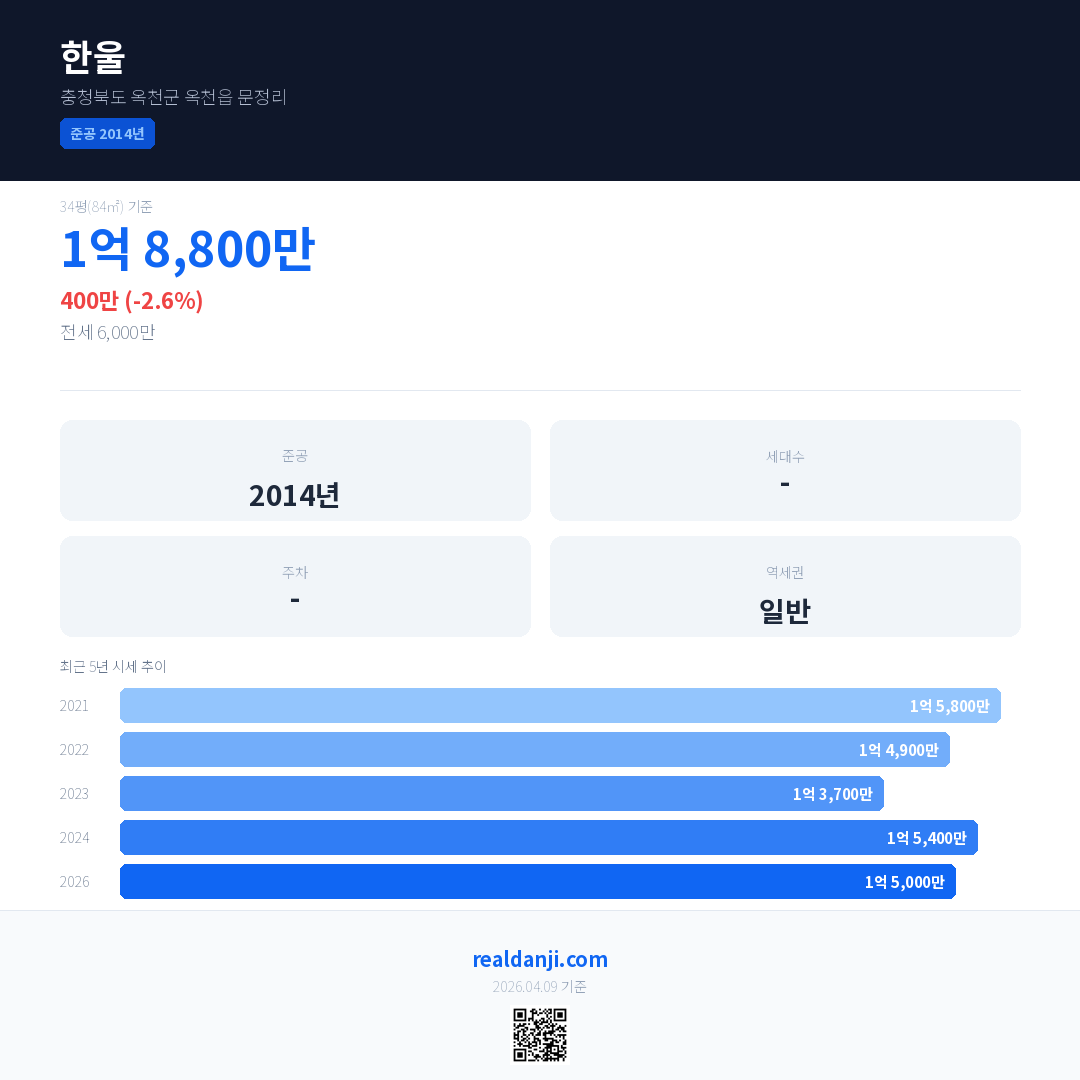 한울 최근 거래가는 1억 8,800만입니다. (2026-01)