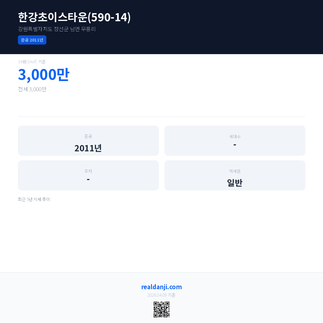 한강초이스타운(590-14) 최근 거래가는 3,000만입니다. (2025-07)