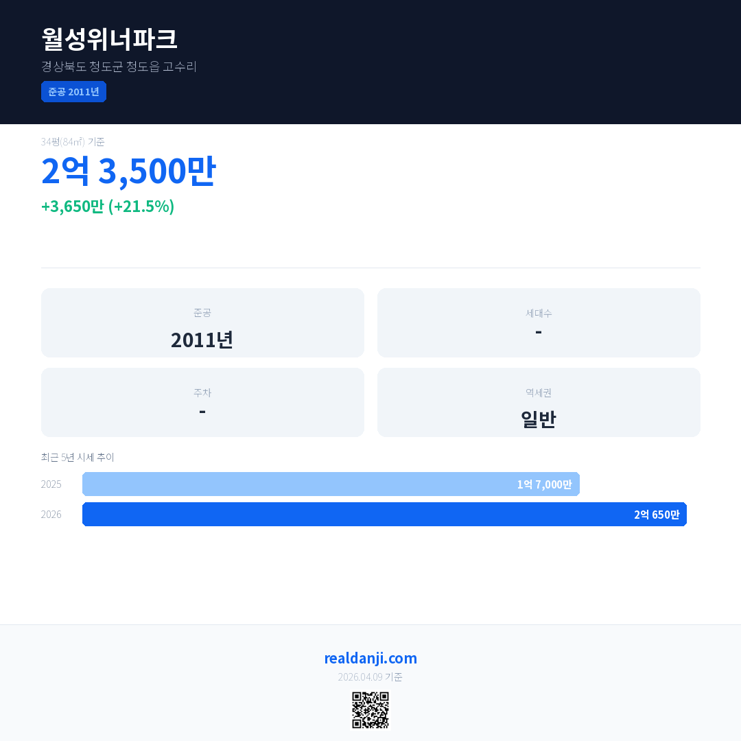 월성위너파크 최근 거래가는 2억 3,500만입니다. (2026-02)