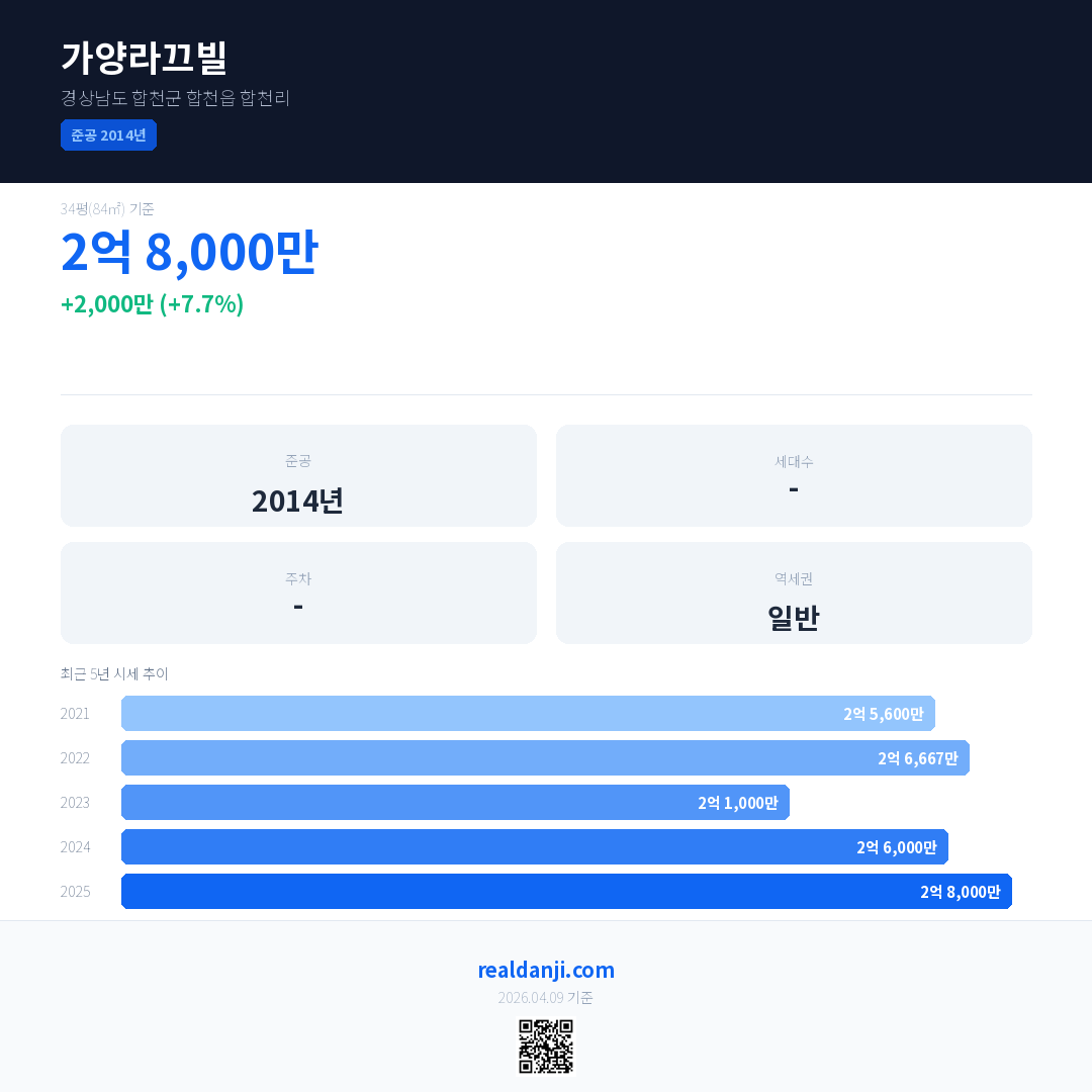가양라끄빌은(는) 2014년에 준공되었으며, 현재 12년차입니다.