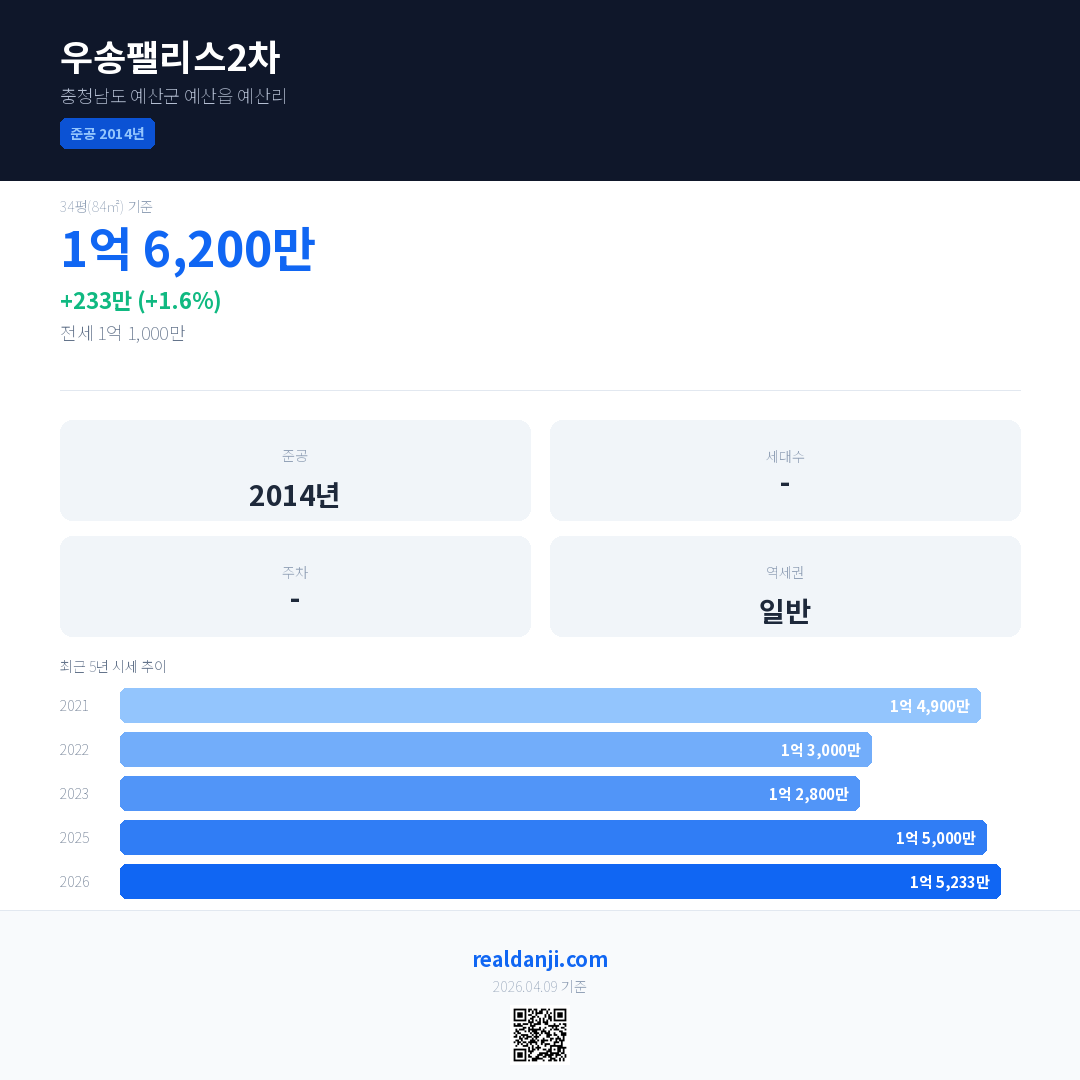 우송팰리스2차 최근 거래가는 1억 6,200만입니다. (2026-03)