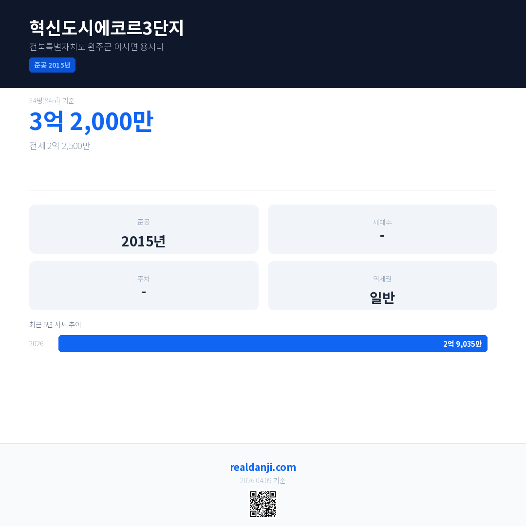 혁신도시에코르3단지 최근 거래가는 3억 2,000만입니다. (2026-03)