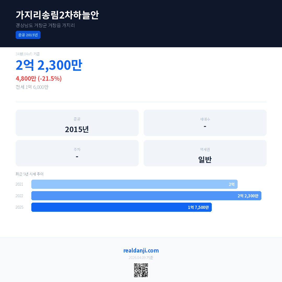 가지리송림2차하늘안 최근 거래가는 1억 6,000만입니다. (2026-03)