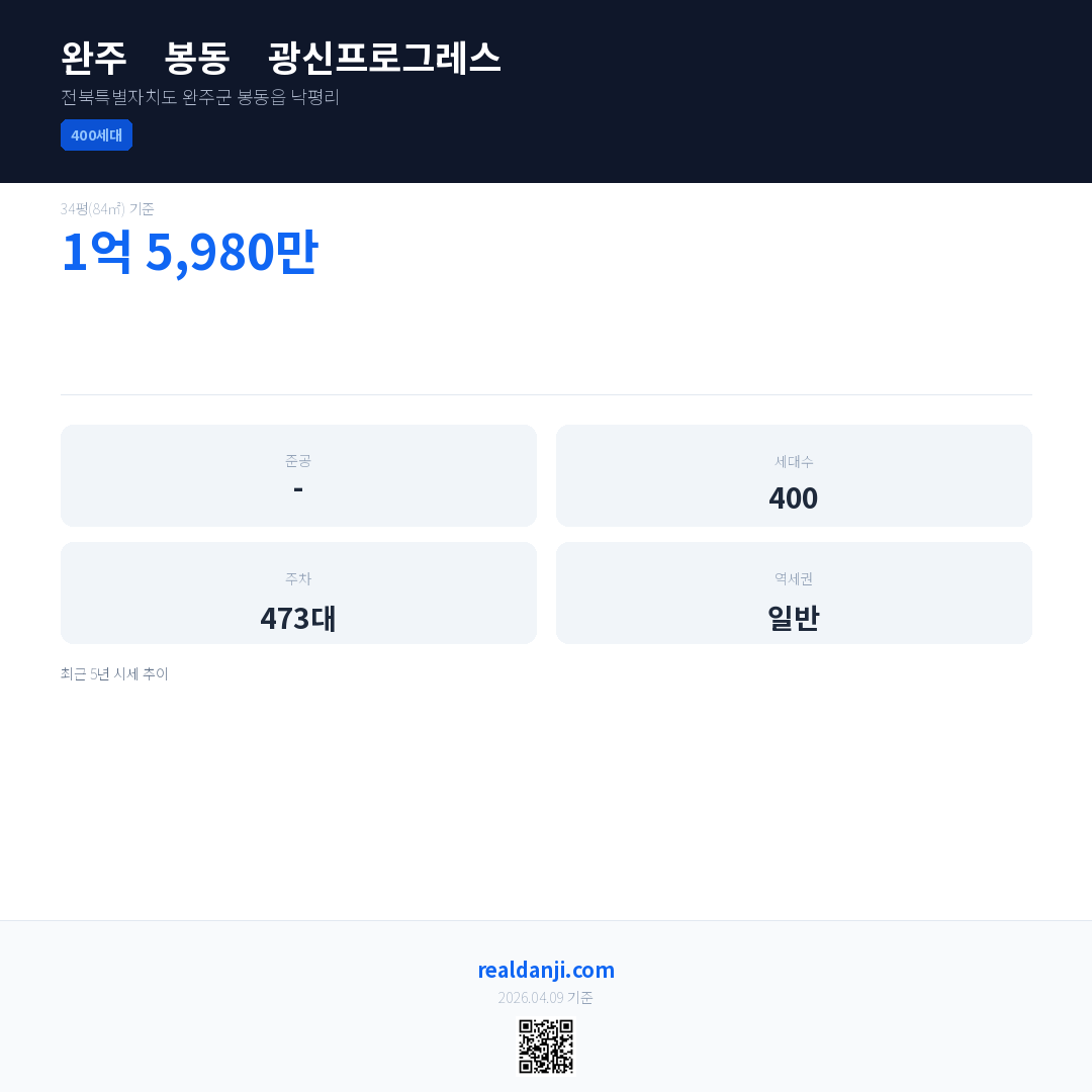 완주 봉동 광신프로그레스 최근 거래가는 1억 5,980만입니다. (2015-04)
