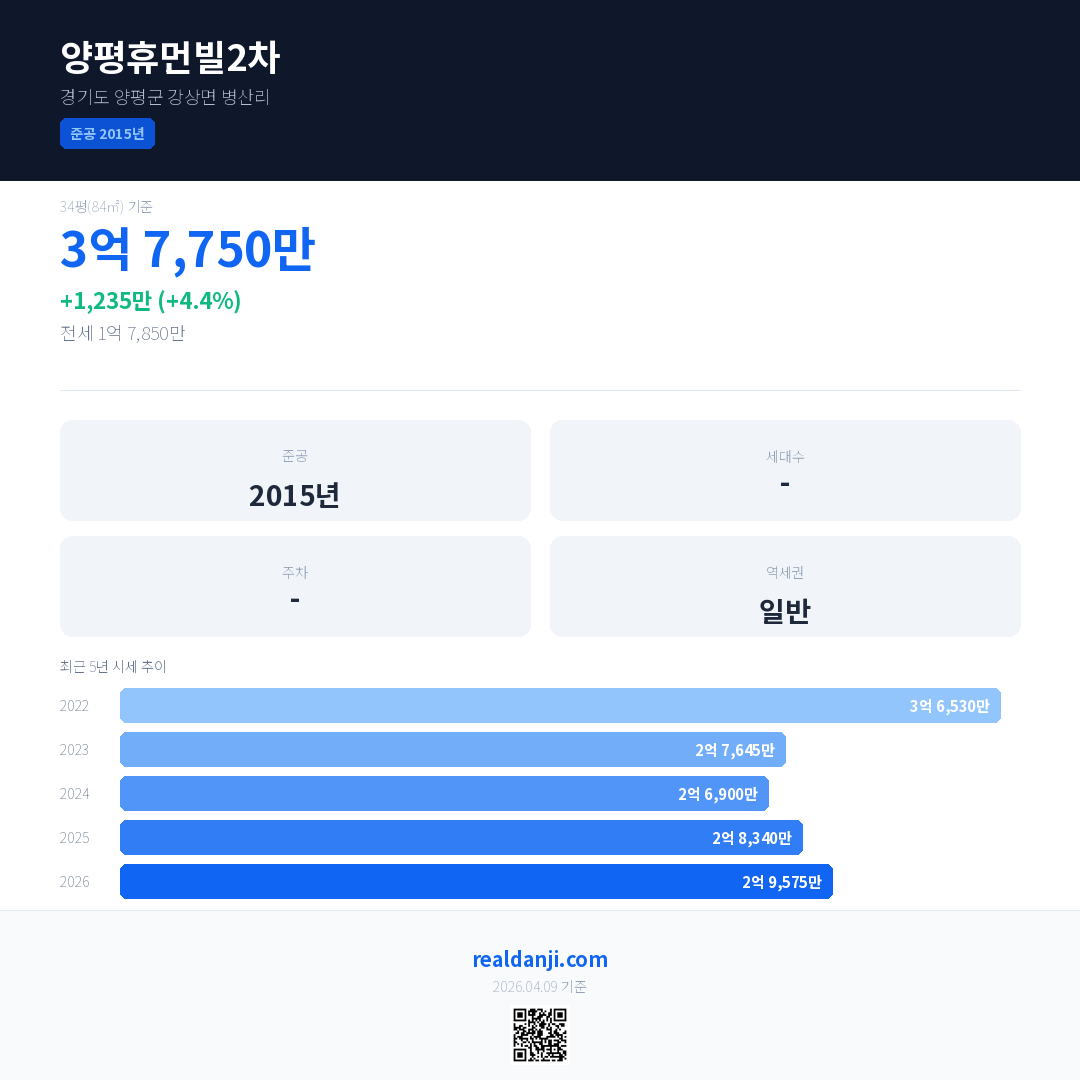 양평휴먼빌2차 최근 거래가는 3억 7,750만입니다. (2026-04)